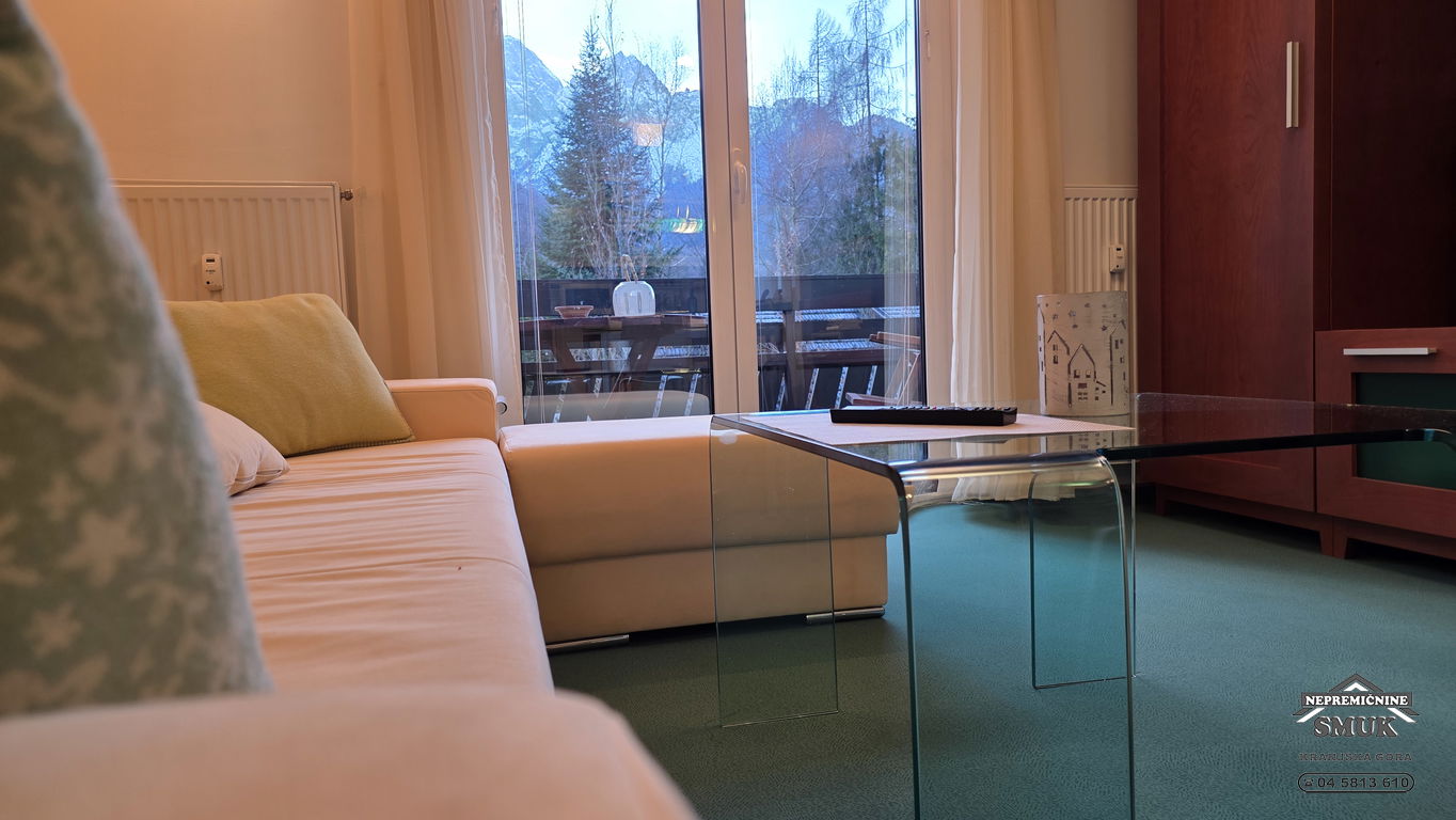 KRANJSKA GORA – GOZD MARTULJEK popolnoma prenovljeno dvosobno stanovanje v velikosti 44,60 m2 s sončnim balkonom s čudovitim razgledom na Martuljkovo skupino na izredno mirni lokaciji PRODAMO