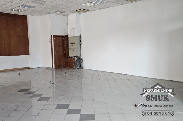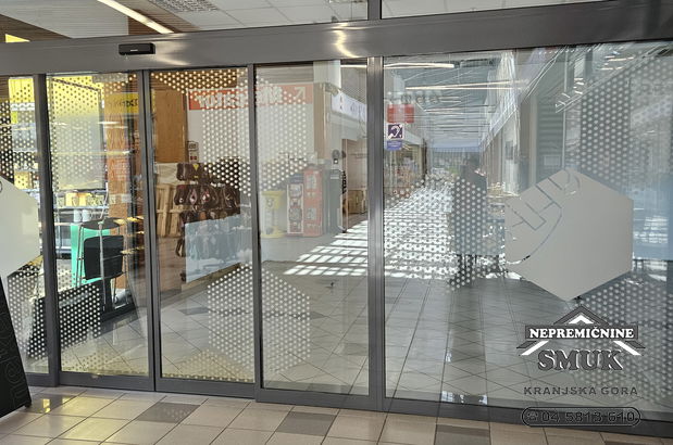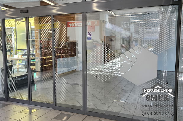 V poslovnem objektu MERCATOR – MERKUR oddano pritlični poslovni prostor v skupni izmeri 81,20 m2. Bivša poslovalnica Gorenjska banka.